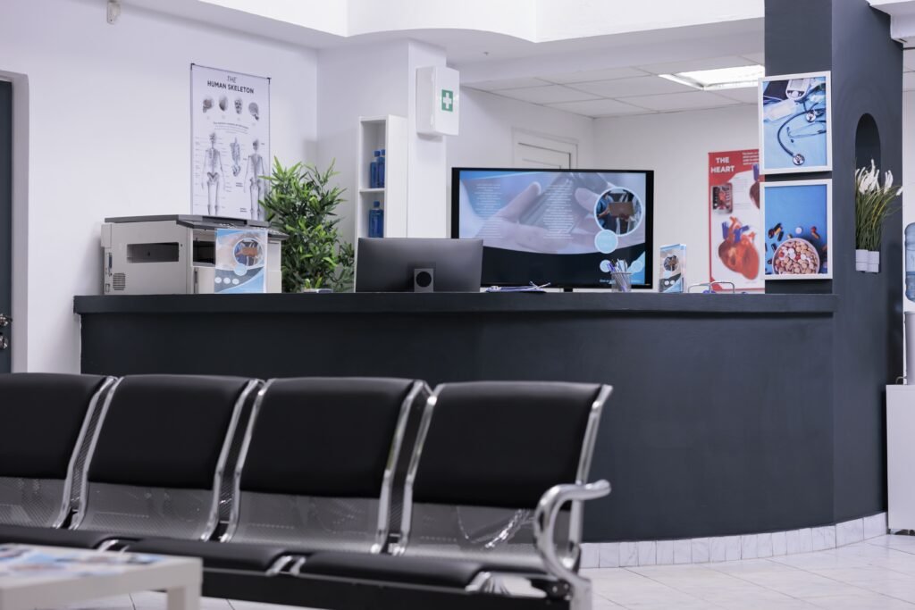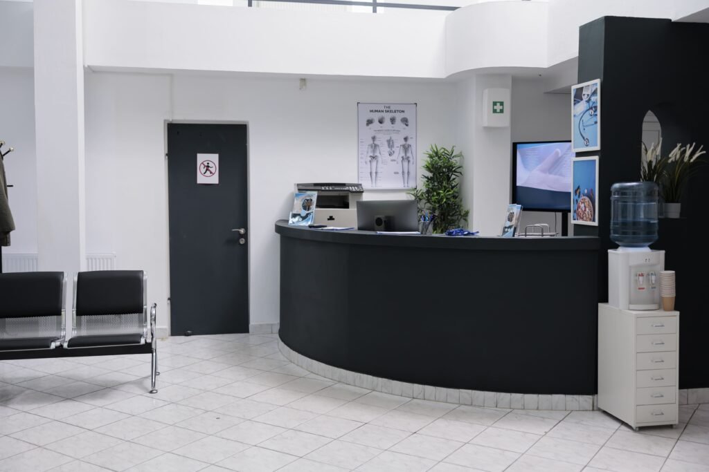 Reception area Doctor Office Waiting area Physiotherapy tools Dr. Sara – Orthopedic Specialist Clean & modern diagnostic area